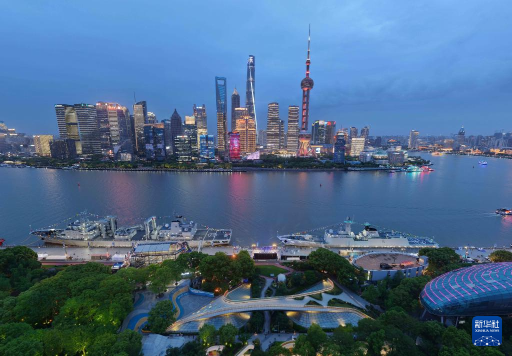 4月21日,舟师阜阳舰、千岛湖舰在上海北外滩外洋客运中心船埠面向公众洞开(无东说念主机像片)。新华社发(孙巍 摄)