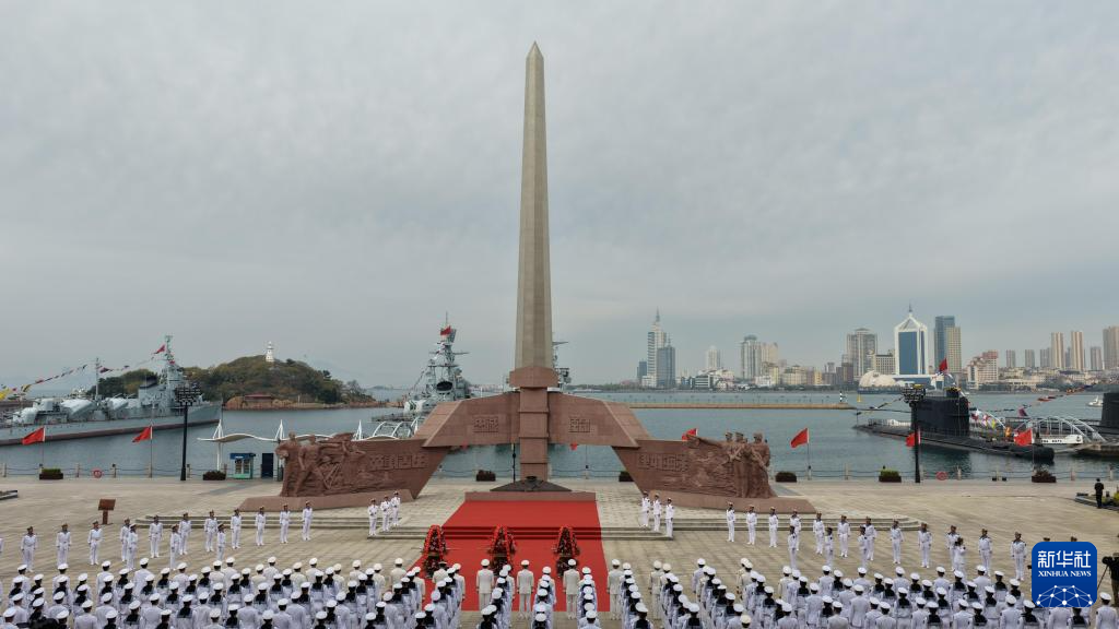 4月23日,驻青岛舟师军队在舟师硬汉广场举行问候东说念主民舟师硬汉庆典。新华社发(李凤祥 摄)