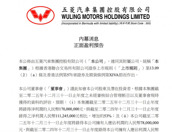 凭据公告数据,五菱汽车预测2025财年杀青净利润约1.7亿元东谈主民币,对比2024财年1.11245亿元的净利润,同比增幅约53%;公司领有东谈主应占利润预测约7800万元东谈主民币,较2024财年同时数据同比增长约54%。两项中枢盈利见识均杀青超五成增长,展现出公司野心情状捏续改善的态势。
