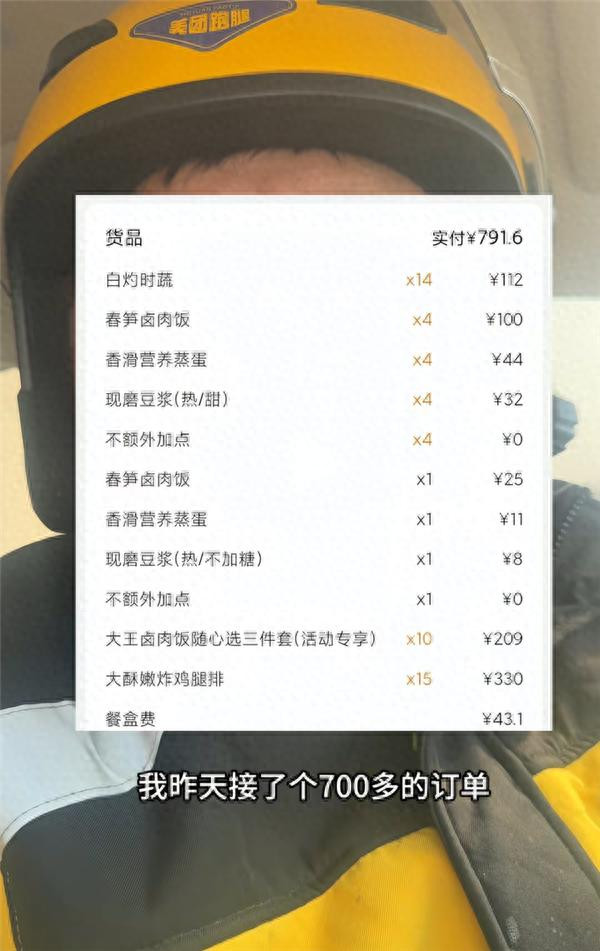 对于“700多元大单”:经查,该骑手近期莫得700多元总和的订单,也莫得其他数百元的订单。