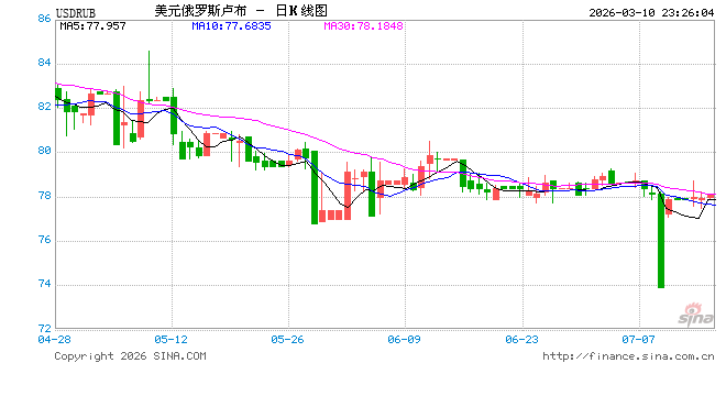 新浪外汇音尘2026年03月10日,适度23时24分,外汇市集上好意思元兑俄罗斯卢布汇率冲破1好意思元兑换79.0455俄罗斯卢布。涨幅为1.0224%