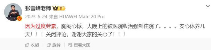 张雪峰2023年入院