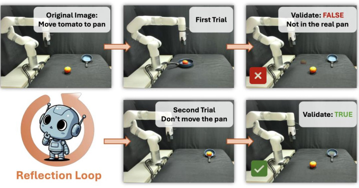 该模块端庄将用户空洞的当然说话指示出动为具体且合理的视觉指标。系统辖先行使文本 VLM 丰富用户的粗拙指示,将粗拙指示出动为包含丰富细节的指示词。 图像生成 VLM(Gemini 2.5 Flash-image)据此生成候选指标图像。为了处理生成图像可能存在的物理或语义分散感性,磋议团队提议了一种迭代的 “合成 - 反念念”(Reflection-through-Synthesis)机制。为了让考证模子大致明晰地评估该图像的物理可行性,系统使用 Grounded SAM [6] 从候选图像等分割出指标物体,并将其算作 “造谣指标” 半透明地重复到运转场景图像上。评估模子(Reflector VLM)对合成图像进行审查。若生成的图像不相宜任务语义(举例指标物体的位置不成达或者失实),Reflector 会输出包含校正响应的修改指示,米兰相通生成器从头生成,直至指标图像被考证通过 或者达到最大迭代次数。