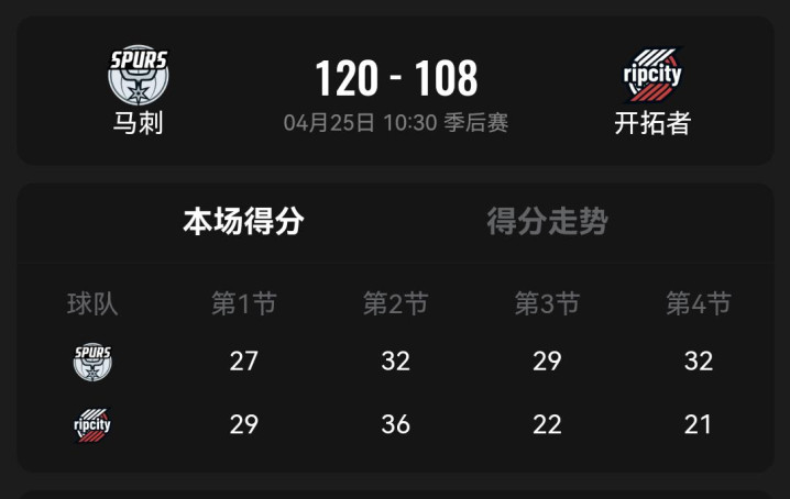 在刚刚落拓的几BA季后赛西部首轮第三场比赛中马刺队的卡斯乐施展出色,哈珀也有上佳施展创造记录,助力马刺队以120:108客场驯服设备者,把两边之间的大比分变为2:1,重新夺回主场上风!