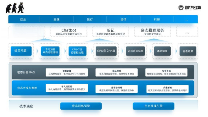 因此,荆华密算正从政企、金融、医疗、法律及销耗端等高敏锐数据场景先行布局。