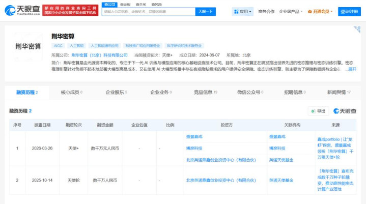 在这一配景下,2025年6月,荆华密算致密干涉履行性运营阶段。这也使其仅几个月后,2025年10月,便取得了英诺天神的千万级天神轮投资。