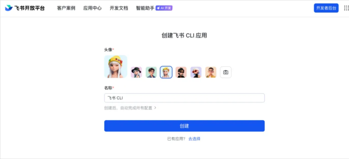 怒放这个设备,你会插足飞书开放平台的诈欺创建页面: