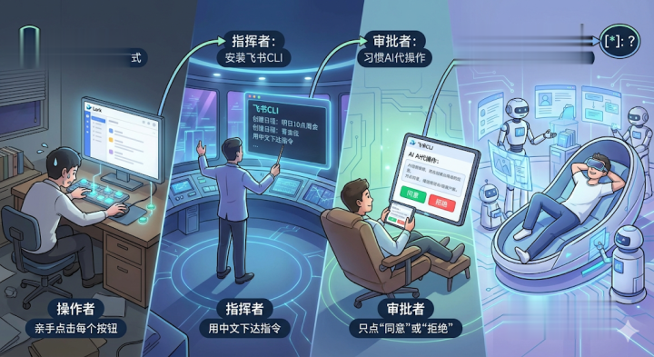 通盘东说念主王人在愉快CLI化让效果普及了,但莫得东说念主问一个更内容的问题——当AI替你操作飞书的那一刻,你从“操作家”酿成了“审批者”,你真实想明晰了吗?