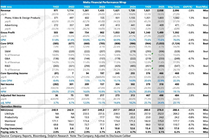 北京时期 3 月 27 日港股盘后、好意思股盘前,$好意思图公司(01357.HK) 发布了 2025 财年财报。2H25 功绩不雅感欠安,收入不足预期,毛利大幅 Miss,但好在用度鸿沟大超预期,操办利润基本 In-line。但组成订阅收入的用户生态显耀承压,因此海豚君总体不雅感欠安。