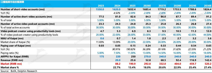 B 端方面,财报会上浮现公司将在本年六月举行影像节,发布新坐褥力居品。经海豚君测算,就当今好意思图触及的商品图及口播赛谈的市集空间约仅 25 亿东谈主民币,这是公司主动错开巨头竞争的成果,颇有种夹缝中求生的滋味。毫无疑问,公司主动拓展垂直深度的 B 端场景以支吾通用大模子竞争是正确遴选,然而从财报数据接头,资金很难对 MAU 及订阅浸透增速双双放缓的 B 端业务赐与过高预期,需要公司在将来改为季度节拍的中枢数据泄漏中展现出更强弹性。