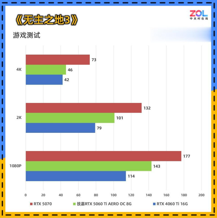 来到经典的3A大作《无主之地3》,技嘉RTX 5060 Ti AERO OC 8G显卡实力不俗,1080P分辨率下的帧数拿到143帧,2K分辨率下帧数破百,只须4K分辨率下的阐发欠佳,天然4K游戏也不是8G显存的所长。