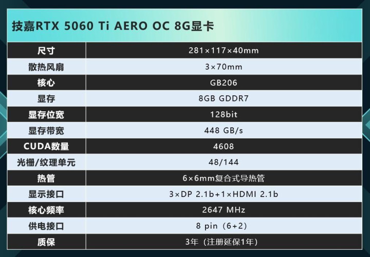 2 技嘉RTX 5060 Ti AERO OC 8G显卡中枢规格与测试平台