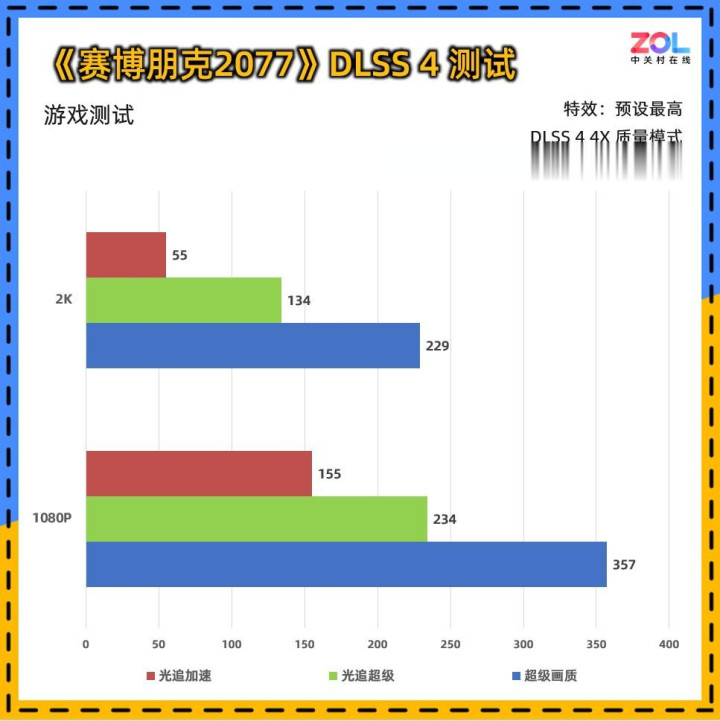 在《赛博一又克2077》中,DLSS 4的测试为Transformer模子4X帧生成模式,超分档位均接管质料。