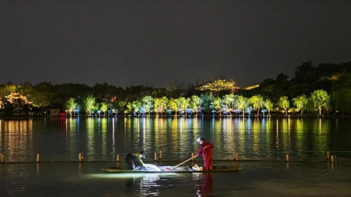 每年4月是西湖荷花助长的舛错期,冬眠一冬的藕茎运转萌芽。但是,荷区也面对水温回升导致病虫害生息、水绵等藻类快速疯长剥夺营养、草食性鱼类啃食荷芽导致藕茎贪污无法着花等多重遏抑。为此,水域处罚处每年春季开展荷区清塘,本年从4月8日晚启动,瞻望4月12日完了。