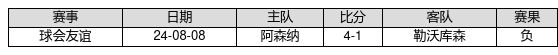 勒沃库森 VS 阿森纳两队近10年的交战次数为1场,勒沃库森0胜0平1负,赢球概率为0.0%,平局概率为0.0%,输球概率为100.0%。