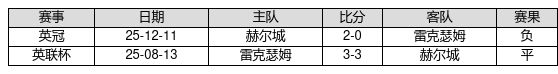 雷克瑟姆 VS 赫尔城两队近10年的交战次数为2场,雷克瑟姆0胜1平1负,赢球概率为0.0%,平局概率为50.0%,输球概率为50.0%。