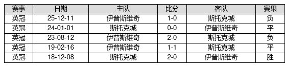 斯托克城 VS 伊普斯维奇两队近10年的交战次数为5场,斯托克城1胜2平2负,赢球概率为20.0%,平局概率为40.0%,输球概率为40.0%。