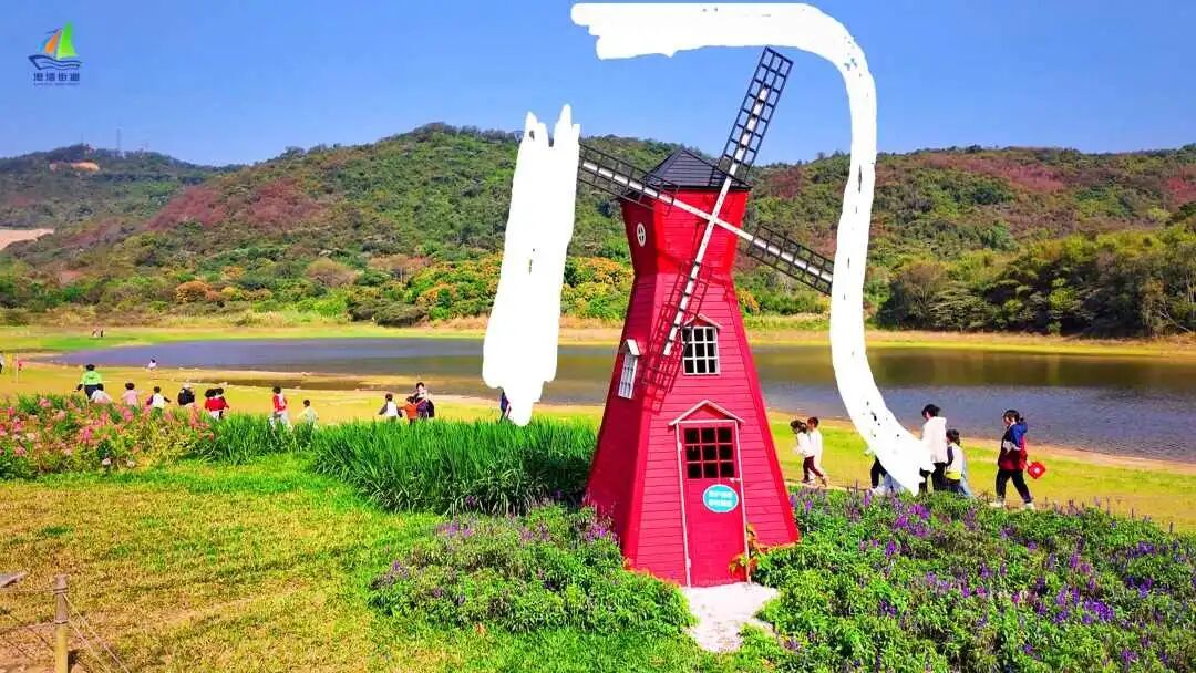 白水湖畔的红色风车,
